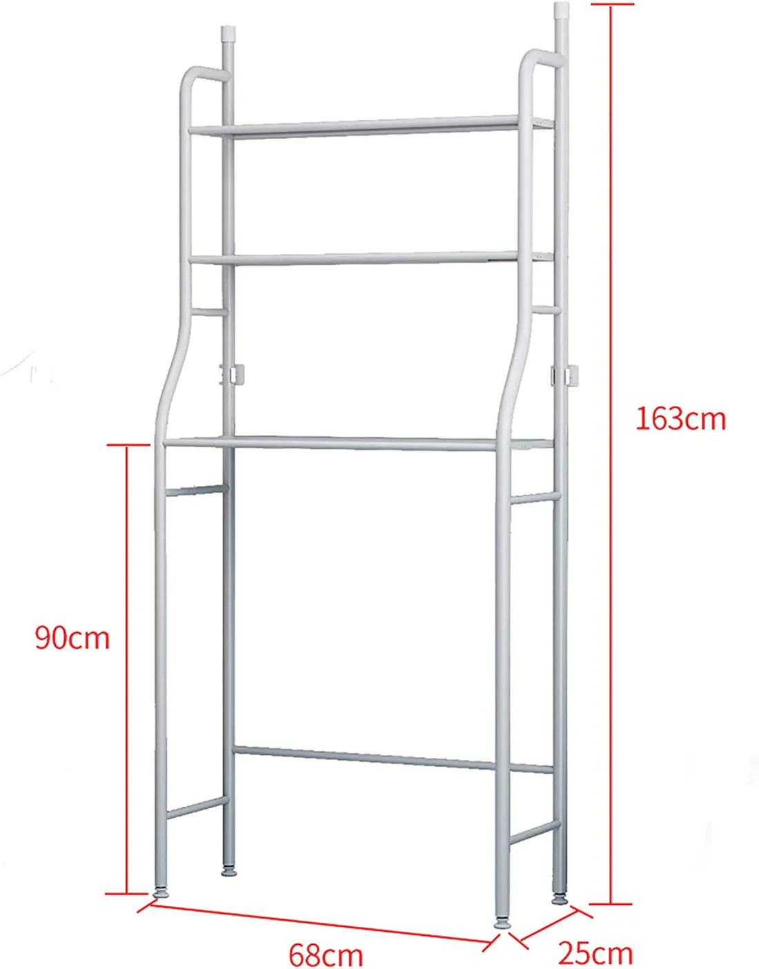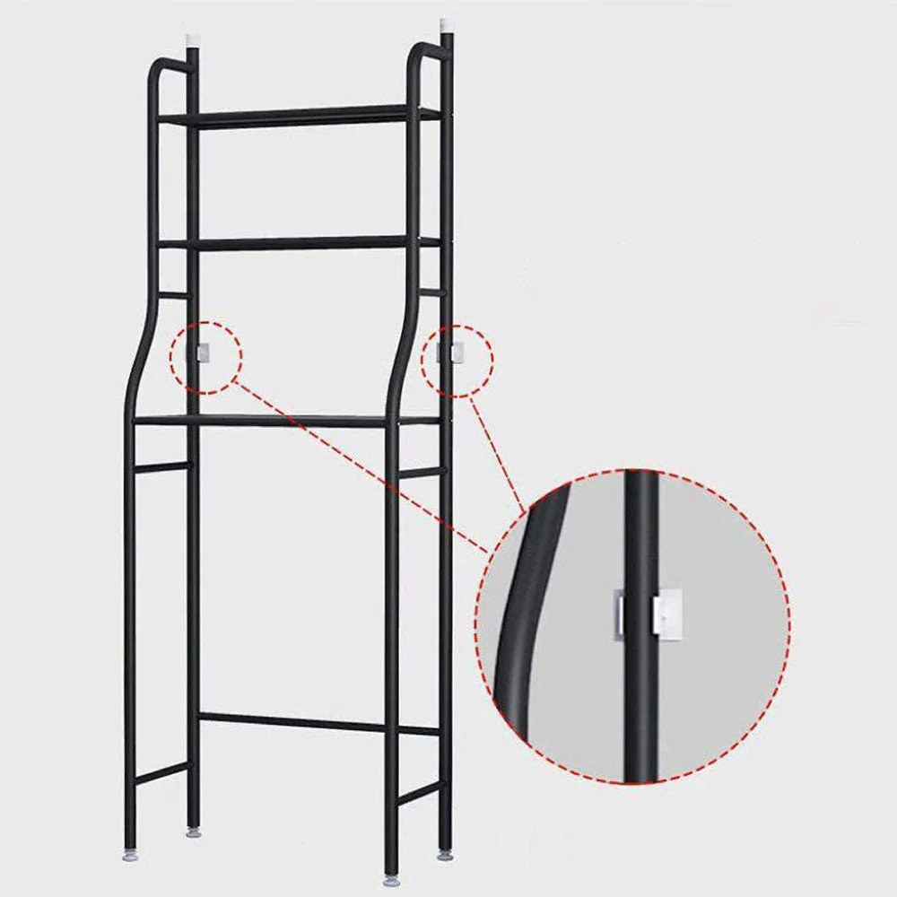 Realizzato in metallo bianco, 3 comodi ripiani, portacarta igienica laterali e due ganci per gli asciugamani laterali, stabilità grazie agli elementi di sostegno e gommini antiscivolo, resistente all ossidazione.